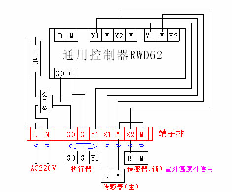5、注意執(zhí)行器信號(hào)線(Y/M)是由控制器輸出端接入,(Y1/M)而非控制器的輸入端(X1/M),更非傳感器端子(B/M)
