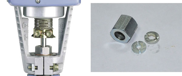 (3)閥桿頂部半月卡環(huán)與SKB..SKC..執(zhí)行器連接只用1個(gè);另一個(gè)不可放置于閥桿頂部,否則相當(dāng)于閥桿加長,導(dǎo)致關(guān)閉不嚴(yán)。